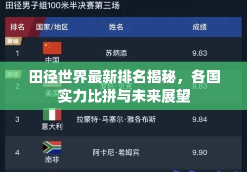 从最新排名来看,各国田径实力对比依然明显,随着新一代选手的崛起和训练水平的提高,未来全球田径格局将发生一些变化。