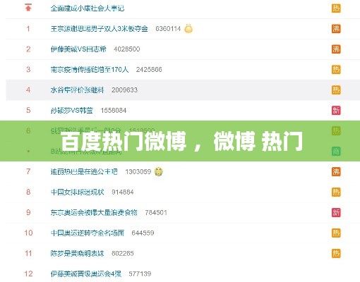 随着社交媒体的日益普及,微博作为中国最大的社交媒体平台之一,成为了人们获取信息、表达观点和分享生活的重要渠道。百度作为国内领先的搜索引擎,其热门微博功能更是吸引了大量用户的关注。本文将带您深入了解百度热门微博的精彩内容,让您不错过任何一个热门话题。